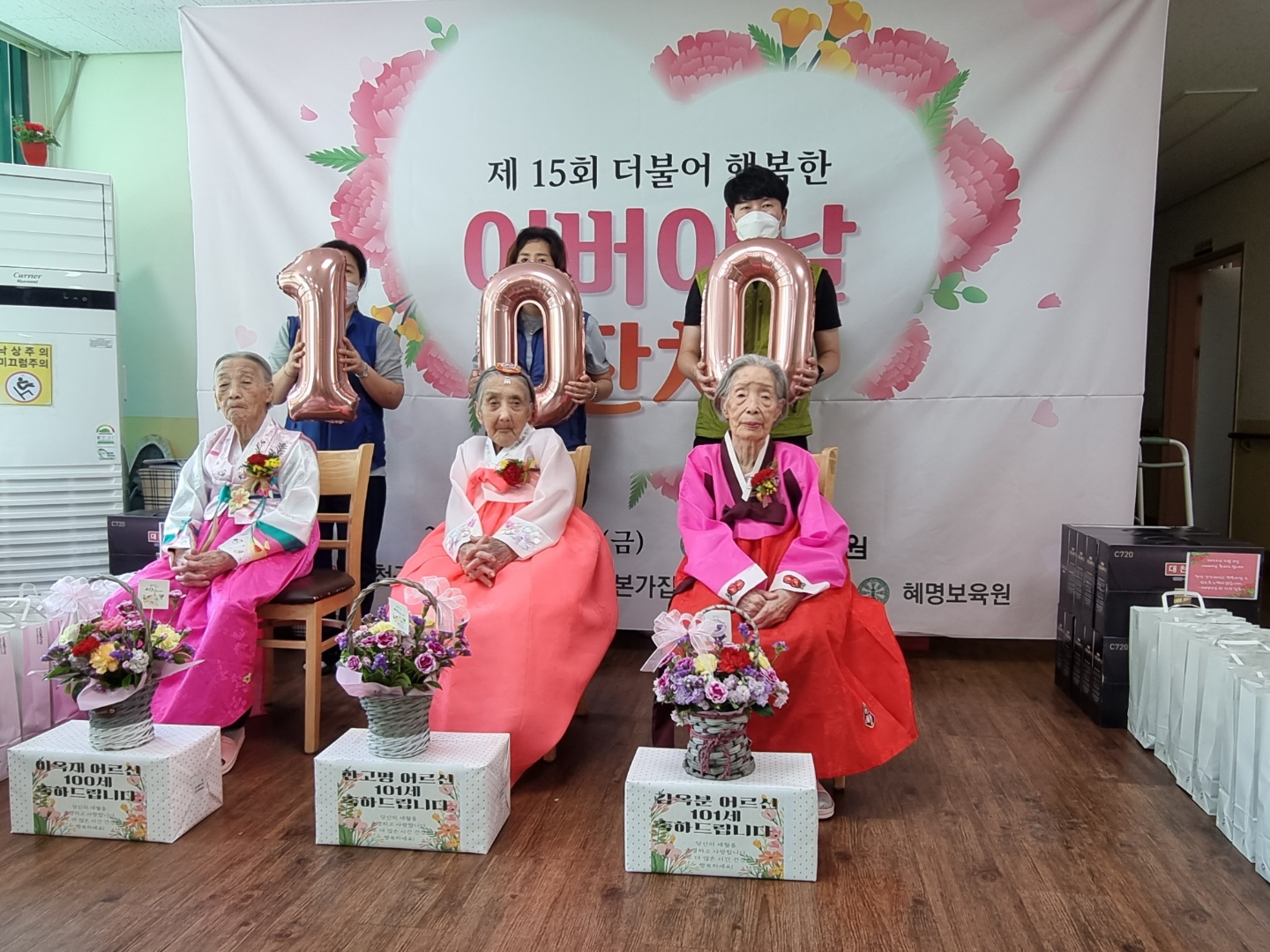 양로원 어르신들도 단체로 모여서 하는 행사는 하지 못했지만 어르신들에게 감사의 마음과 선물을 전달해드리고 100세 어르신들 3분은 모여서 기념촬영을 진행하고 사진 출력하여 가족분과 어르신에게 각각 전달해드렸습니다.