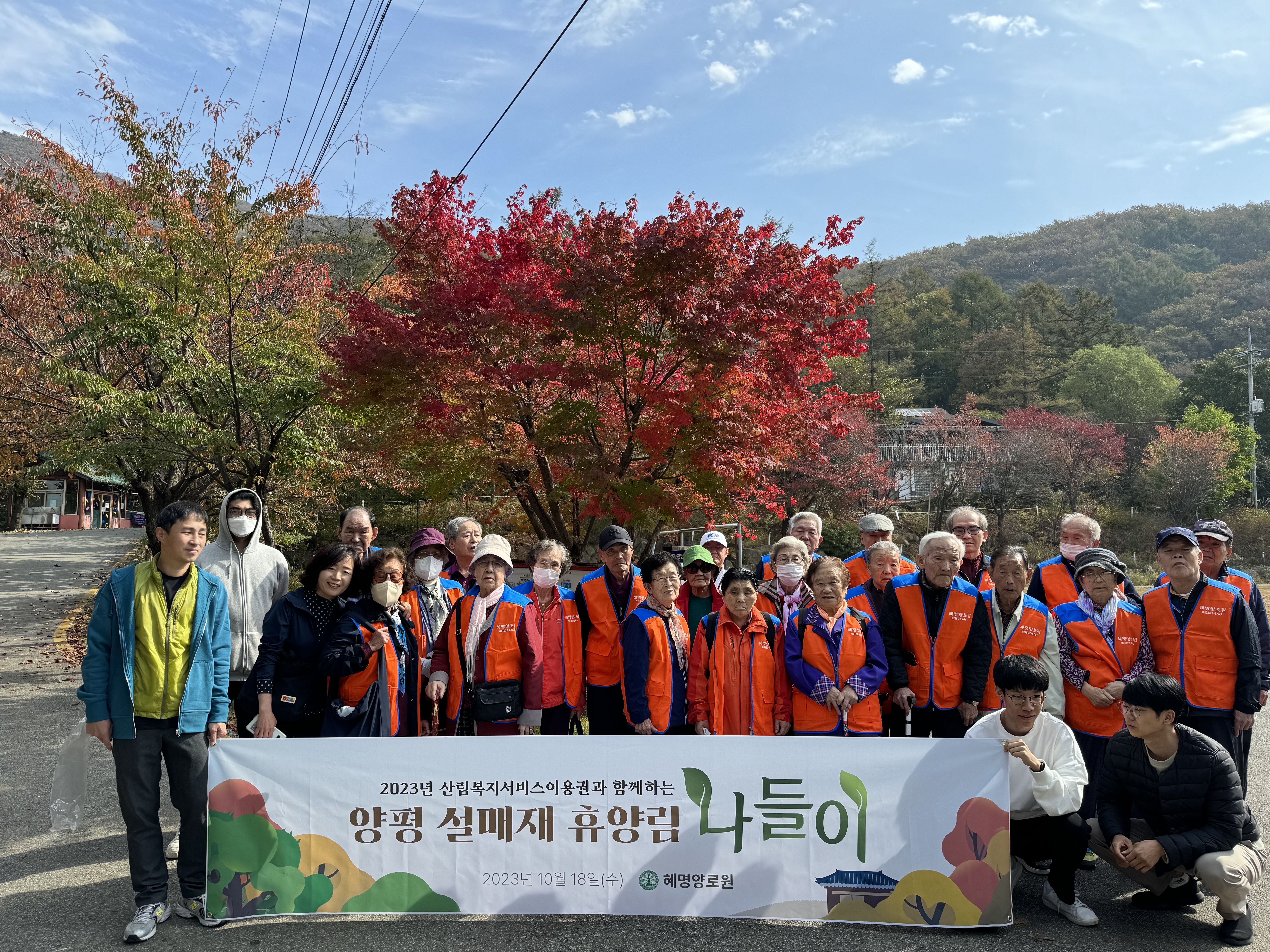 청명한 가을 하늘이 눈부시던 지난 10월 18일, 혜명양로원 어르신들과 함께 양평 설매재 휴양림으로 가을 나들이를 다녀왔습니다!