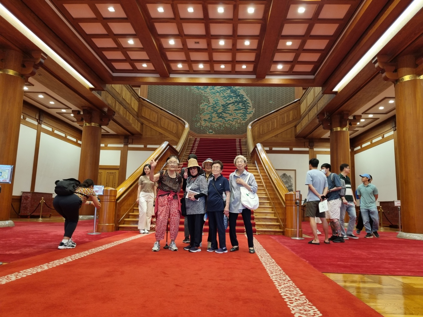 늘 뉴스와 TV로만 보던 '청와대'를 어르신들이 직접 방문하셨습니다! 푸른 잔디와 늠름한 본관을 배경으로 기념사진을 찍으시며, "내가 여기를 다 와보네"라며 감회에 젖기도 하셨습니다. 역사의 현장을 직접 거닐어보며 모두에게 뜻깊은 추억으로 남은 하루였습니다.