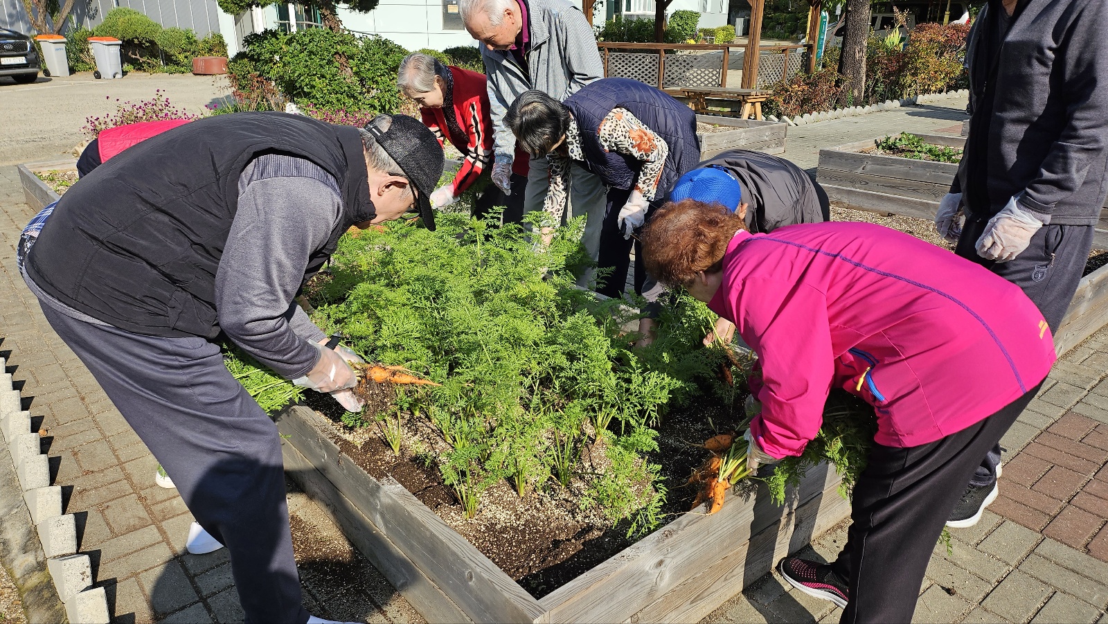 어르신들이 수확한 당근을 활용해 야채전을 만들어 함께 나누어 드시며 담소를 나누는 따뜻한 시간을 가졌습니다.