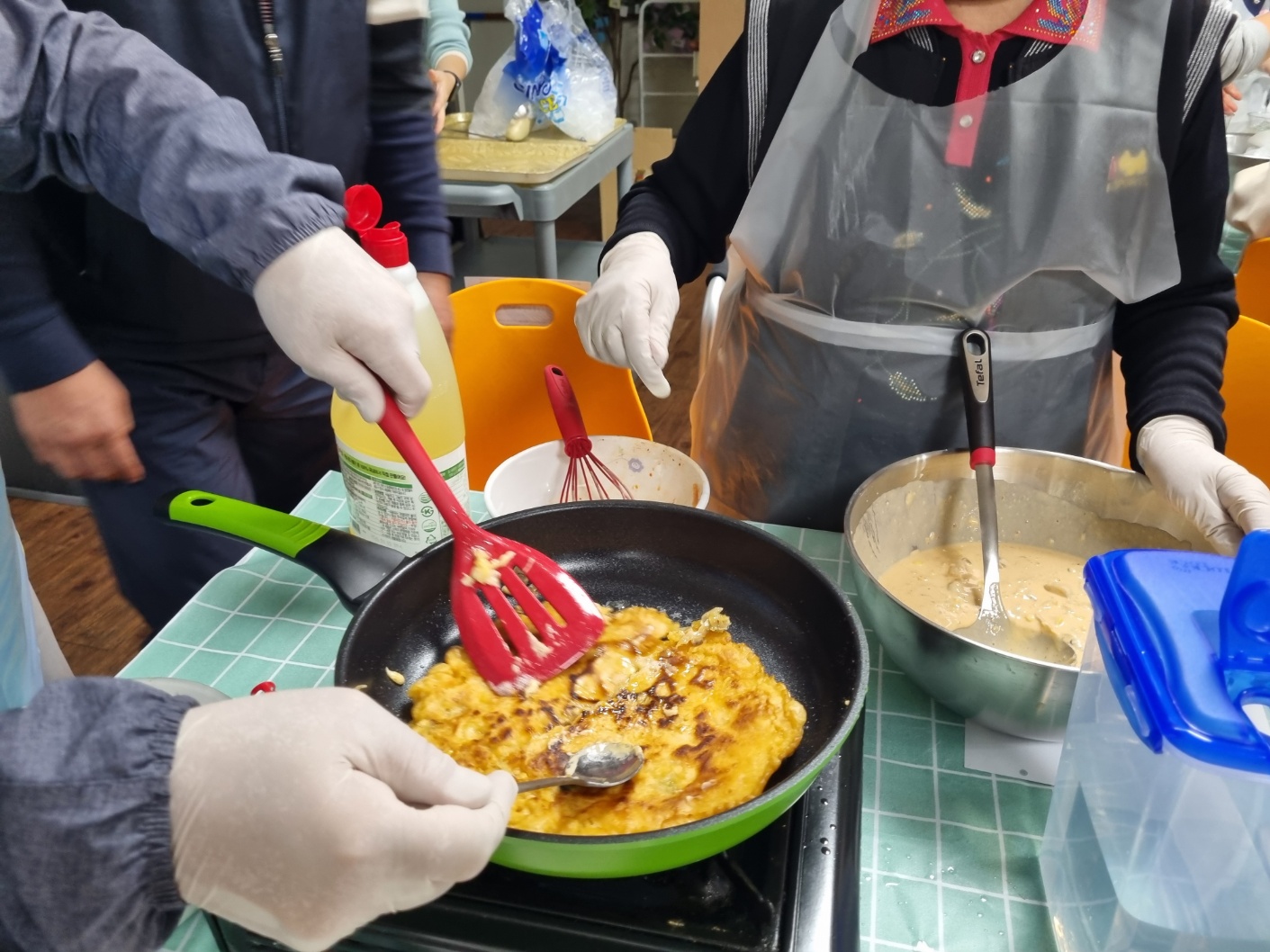 팬 위에서 노릇노릇 익어가는 전처럼 우리들의 마음도 따뜻하게 익어가는 시간이었습니다. 서툰 솜씨지만 서로 도와가며 정성껏 만든 음식을 나누어 먹으니 그 맛이 배가 되는 듯했습니다. 음식과 함께 도란도란 이야기를 나누는 모습에서 진정한 '식구'의 정을 느낄 수 있었습니다.