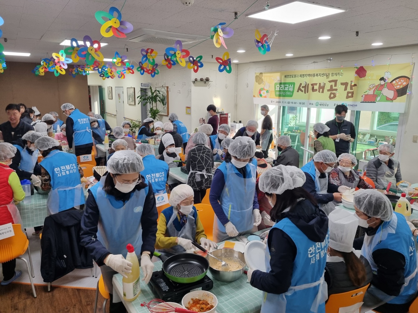 지난 11월 11일, 혜명양로원 강당에 고소하고 맛있는 냄새가 가득 퍼졌습니다. 한전MCS(주) 구로금천지점 임직원분들과 혜명지역아동복지센터가 함께하는 '세대공감 요리교실' 행사가 열렸기 때문입니다.