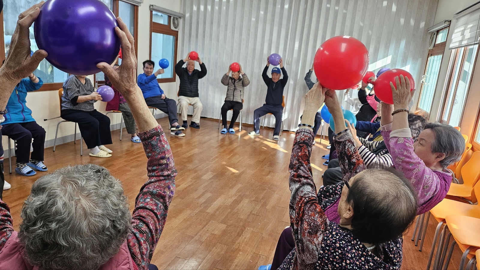함께 박수를 치고, 팔을 크게 뻗으며 웃는 동작 하나하나가 어르신들의 굳은 몸과 마음을 풀어주어, 스트레스 해소에 큰 도움이 되고 있습니다.