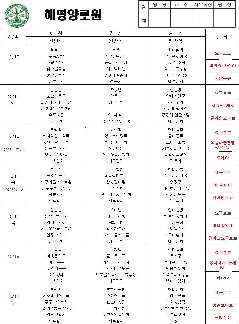 1557 25년 10월 3주차 주간식단표 25-10-13 관리자