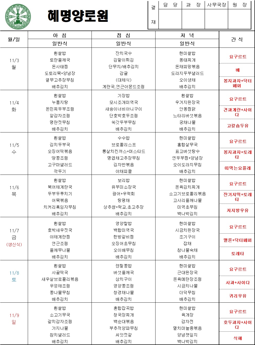 | 1560 | 25년 11월 1주차 주간식단표 | 25-11-03 | 관리자 |