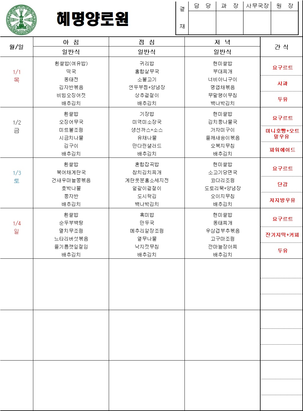 | 1724 | 26년 1월 1주차 주간식단표 | 26-01-01 | 관리자 |