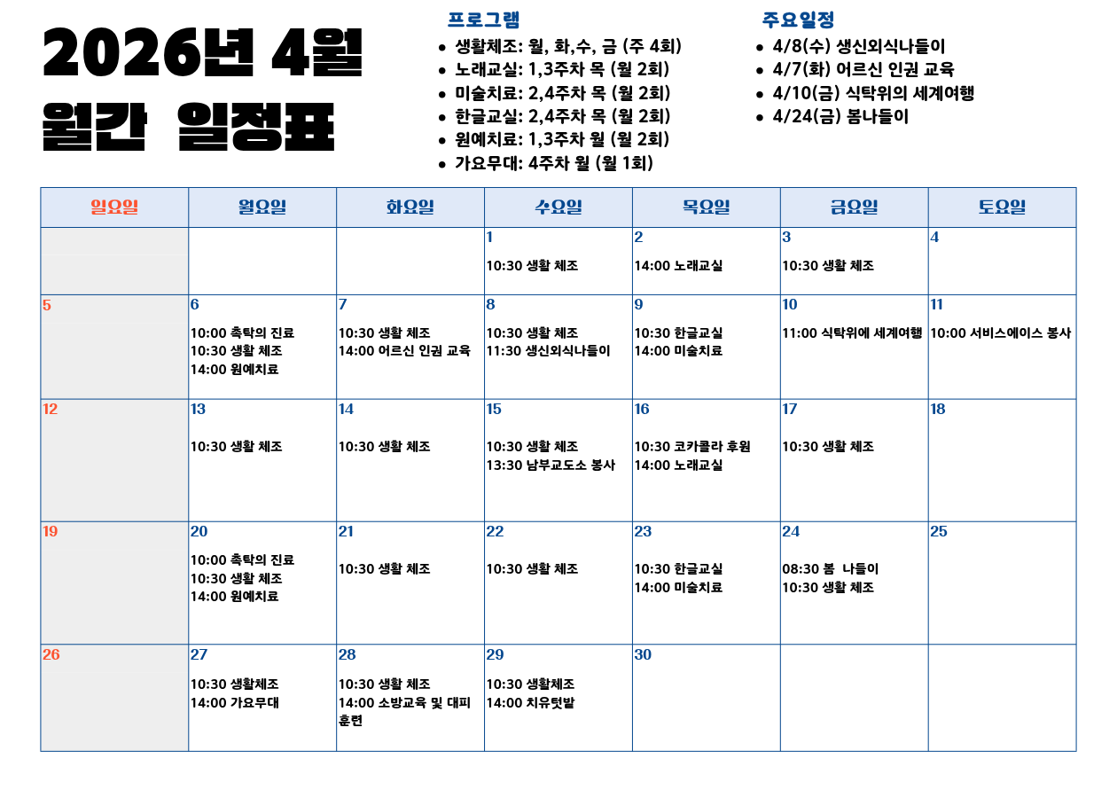 26년 4월 일정표