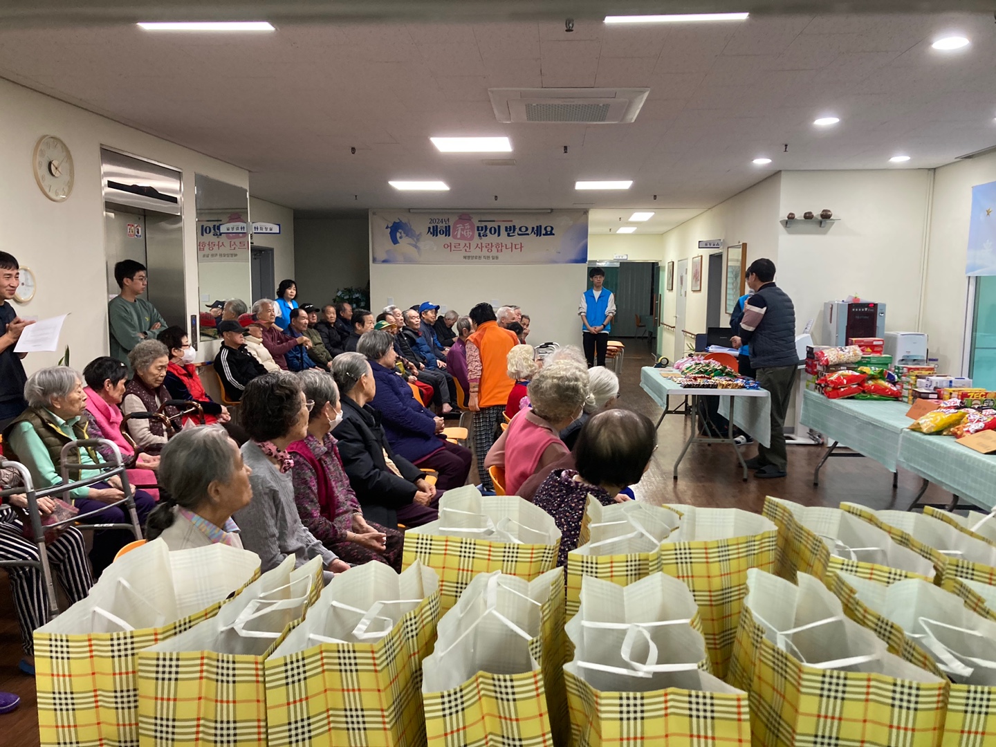 "새해 복 많이 받으세요!", "어르신 사랑합니다" 직원들의 새해 인사에 어르신들은 따뜻한 박수로 화답해 주셨습니다. 혜명양로원은 감사의 마음을 담아 어르신들께 푸짐한 '특별식'과 정성껏 준비한 '송년 선물'을 모든 분께 전달해 드렸습니다.