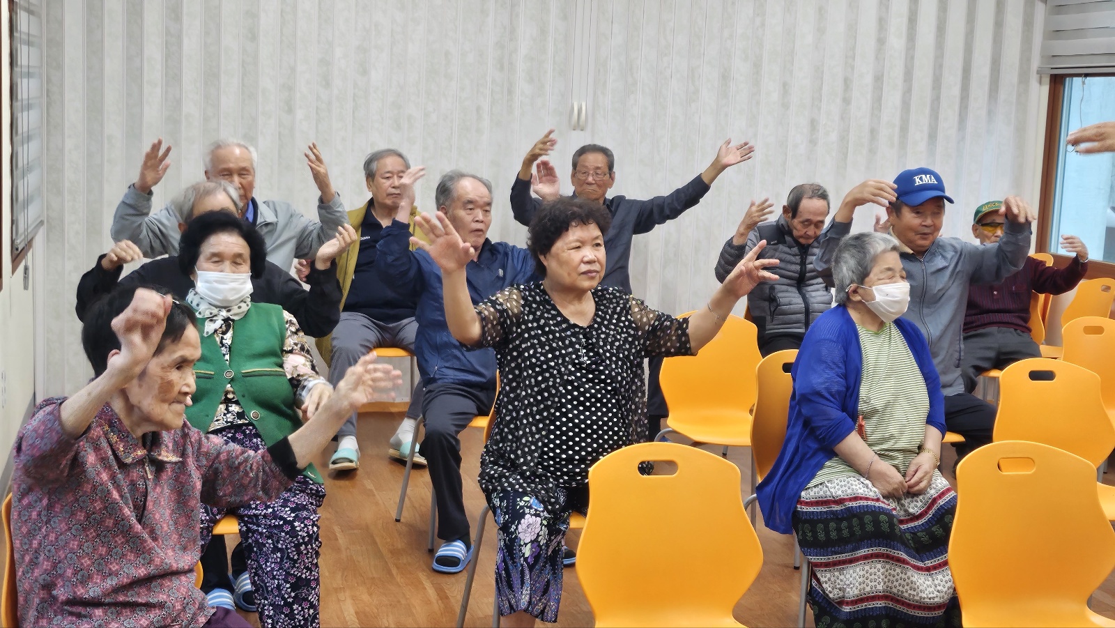 함께 박수를 치고, 팔을 크게 뻗으며 웃는 동작 하나하나가 어르신들의 굳은 몸과 마음을 풀어주어, 스트레스 해소에 큰 도움이 되고 있습니다.
