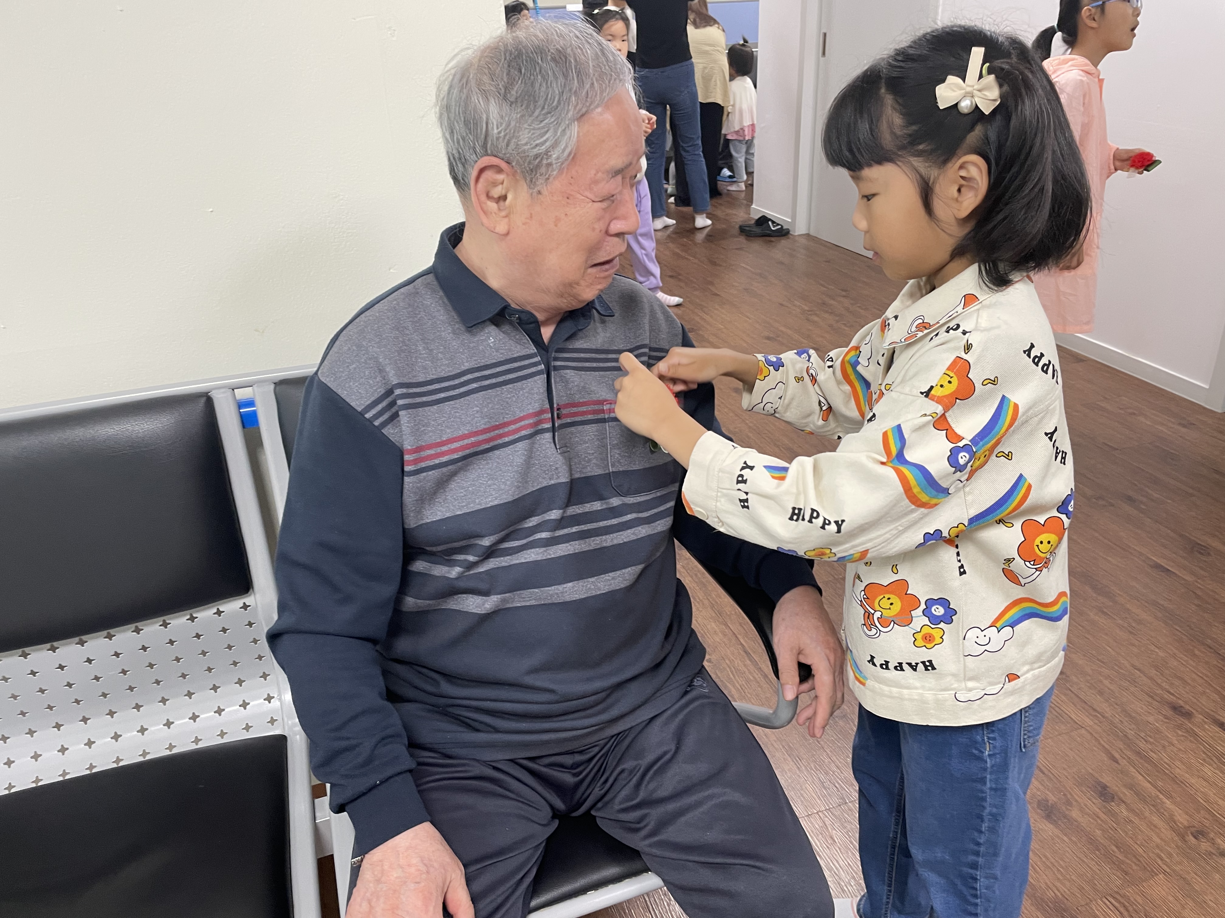 이날은 어르신들을 위해 정말 많은 손님들이 찾아와 주셨습니다. 먼저 혜명메이빌 아동들이 고사리 같은 손으로 어르신들의 가슴에 붉은 카네이션을 직접 달아드렸습니다. 손주 같은 아이들의 정성 어린 손길에 어르신들의 얼굴에는 온화한 미소가 번졌습니다.