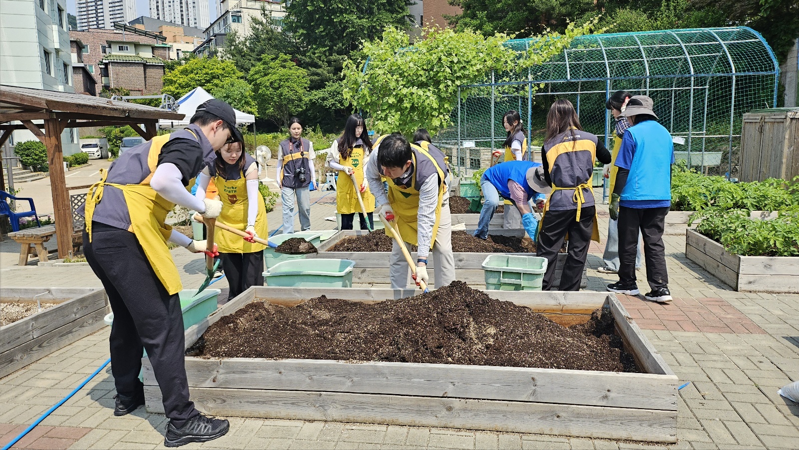 또한 어르신들의 소중한 일상이자 즐거움인 상자 텃밭 재정비도 함께 이루어졌습니다. 작물이 잘 자랄 수 있도록 기존 흙을 뒤집고 영양분이 가득한 배양토를 섞어주는 작업을 진행했습니다. 무거운 흙을 나르고 평평하게 골라주신 덕분에, 어르신들이 언제든 작물을 심고 가꾸실 수 있는 비옥한 텃밭이 완성되었습니다.