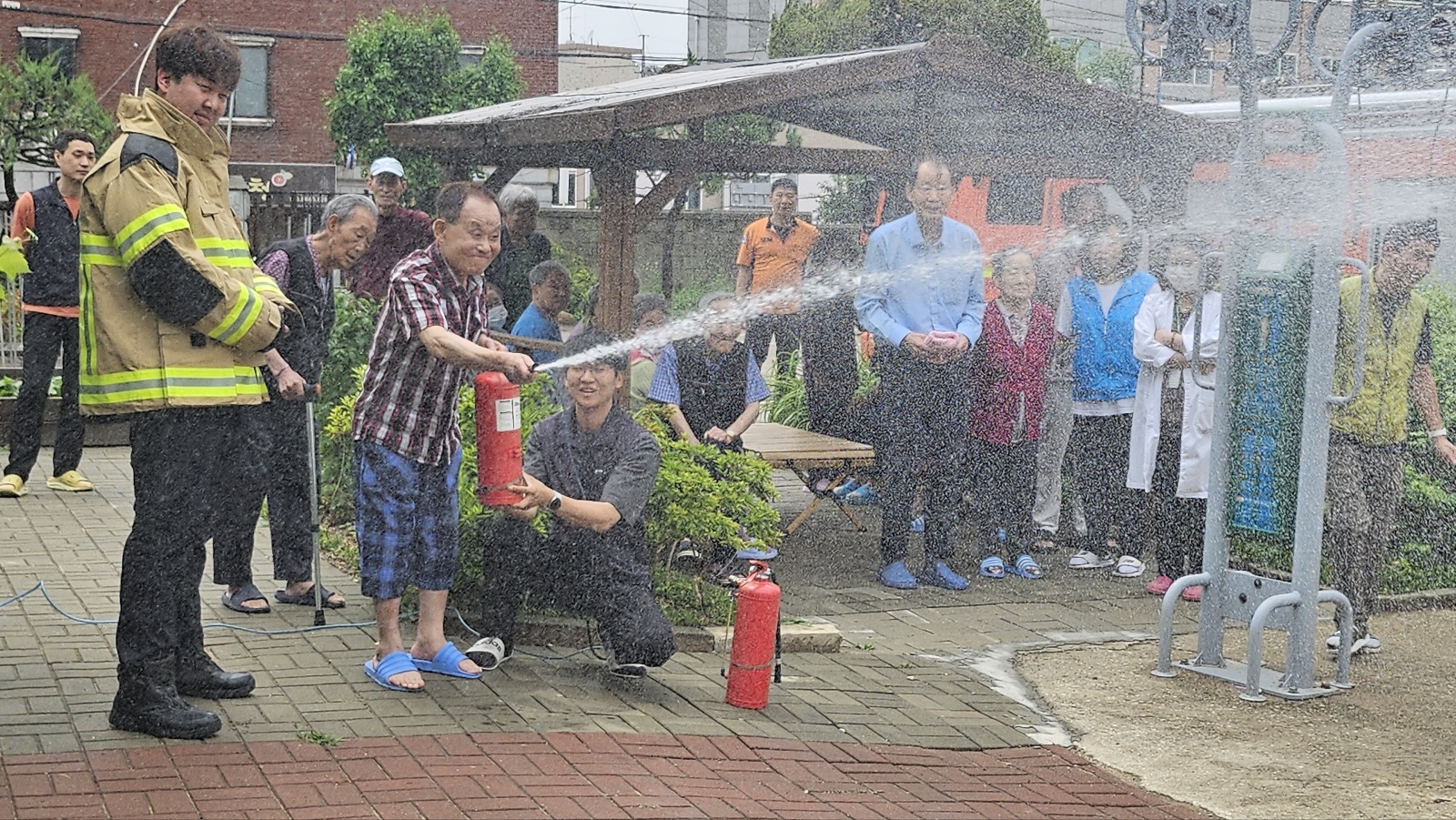 이날 훈련은 화재 예방을 위한 시청각 안전 교육으로 시작되었습니다. 교육 후에는 어르신들과 직원들이 직접 물 소화기를 사용해보는 실습 시간을 가졌습니다. 소방관님의 지도 아래 올바른 소화기 사용법을 익히며, 실제 화재 상황에서도 당황하지 않고 초기 진화를 할 수 있는 능력을 키웠습니다.