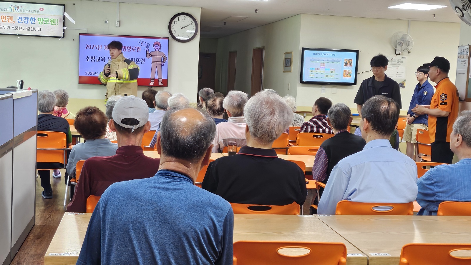 이어 가상의 화재 상황을 설정한 모의 대피 훈련이 진행되었습니다. 화재 경보가 울리자 어르신들은 직원의 유도에 따라 침착하고 질서 있게 지정된 대피 장소로 이동하셨습니다. 모두가 실제 상황처럼 진지하게 훈련에 임하며 비상 대피 경로와 행동 요령을 몸소 익히는 뜻깊은 시간이었습니다.