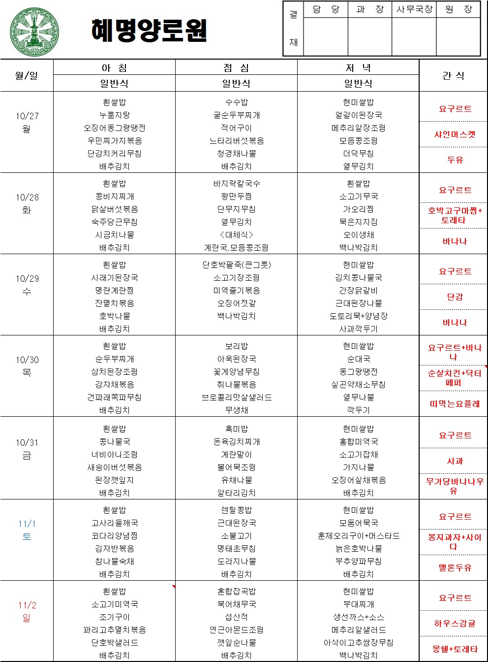 | 1560 | 25년 11월 1주차 주간식단표 | 25-11-03 | 관리자 |