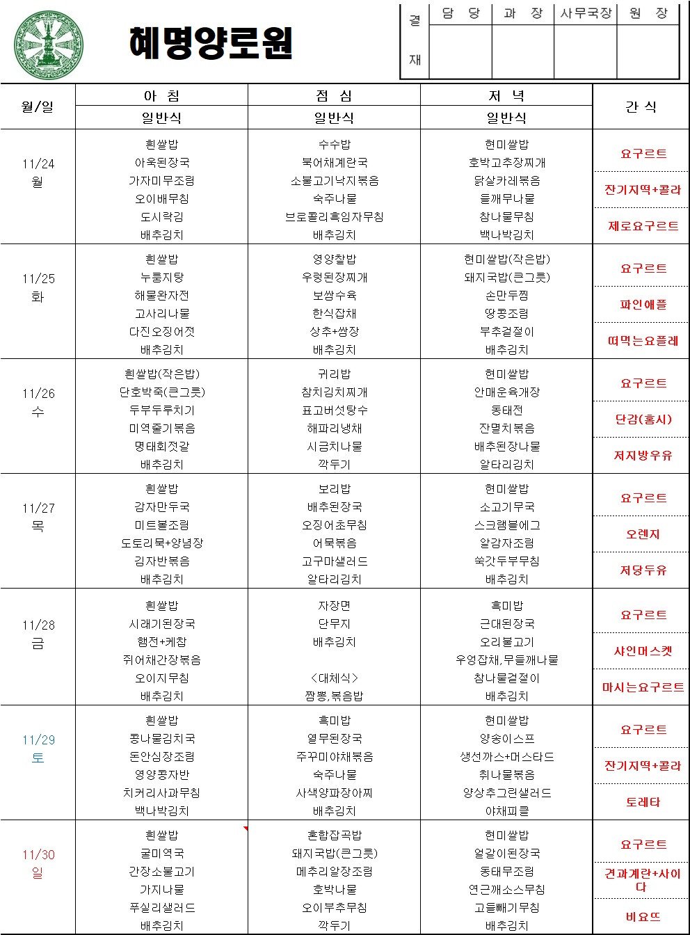 | 1642 | 25년 11월 3주차 주간식단표 | 25-11-17 | 관리자 |