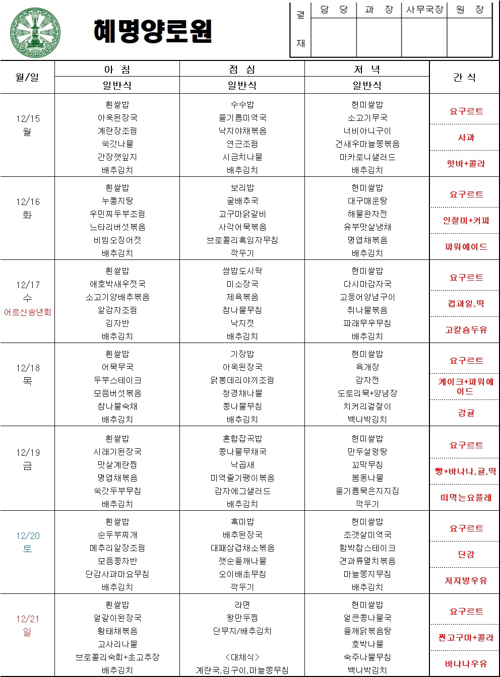 25년12월3주차 주간식단표