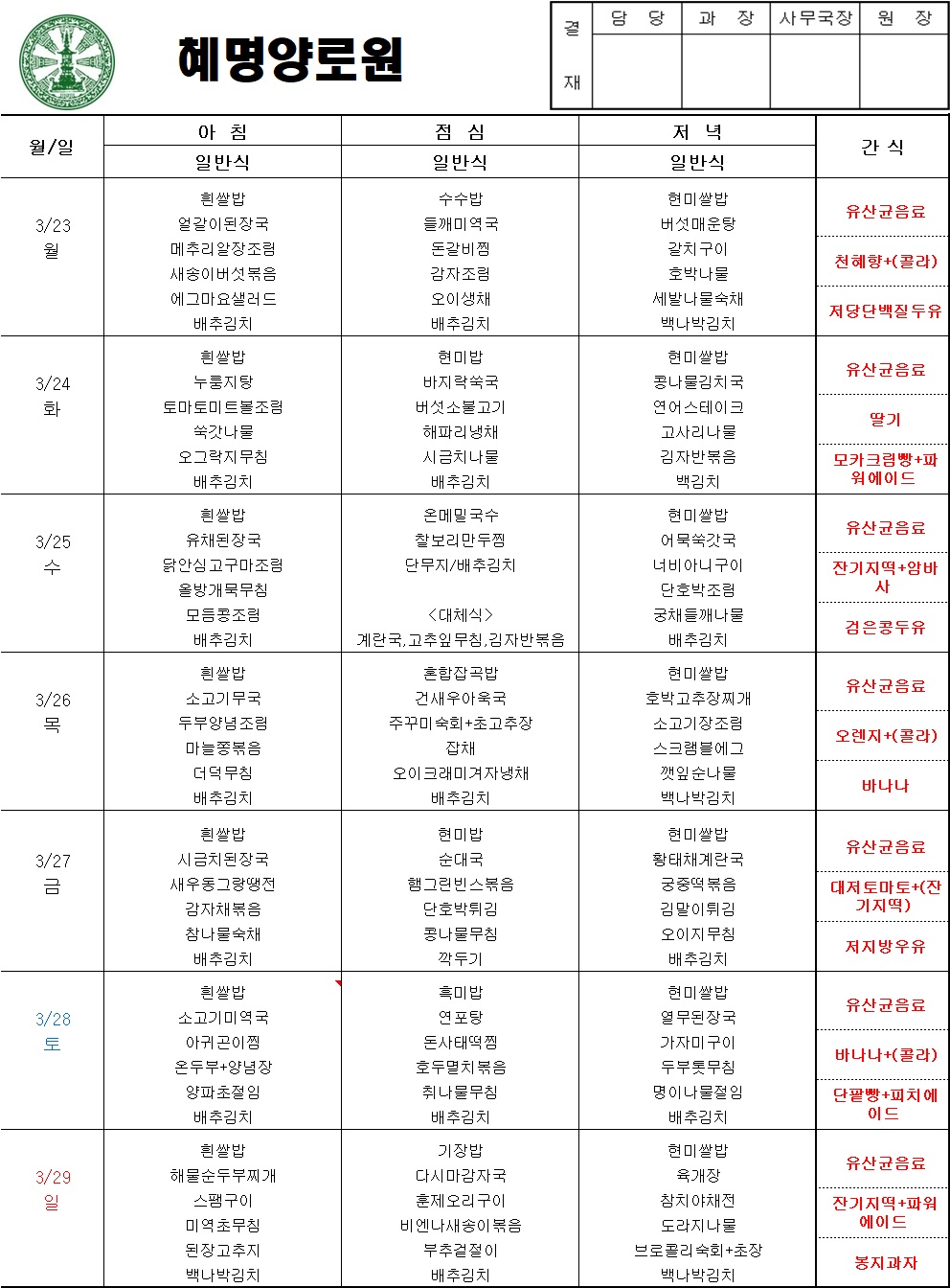 | 1773 | 26년 3월3주차 주간식단표 | 26-03-16 | 관리자 |