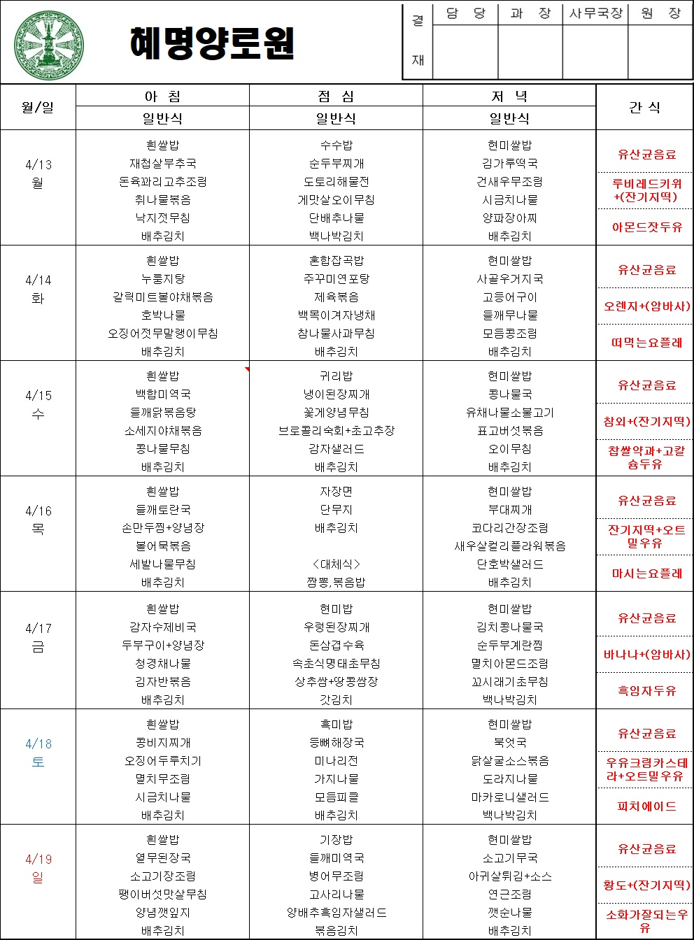 | 1790 | 26년 4월 4주차 주간식단표 | 26-04-20 | 관리자 |